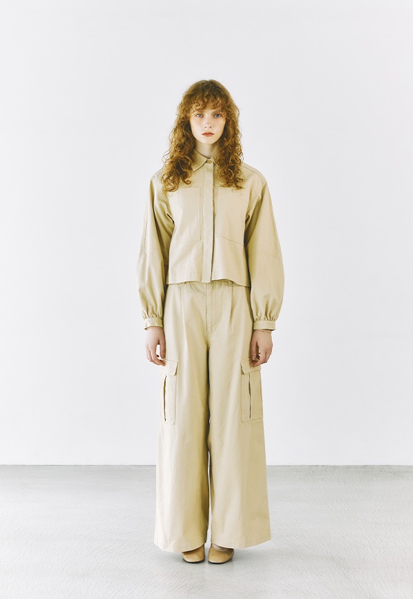 同素材のパンツと合わせてセットアップとしてのコーディネートも楽しめます。