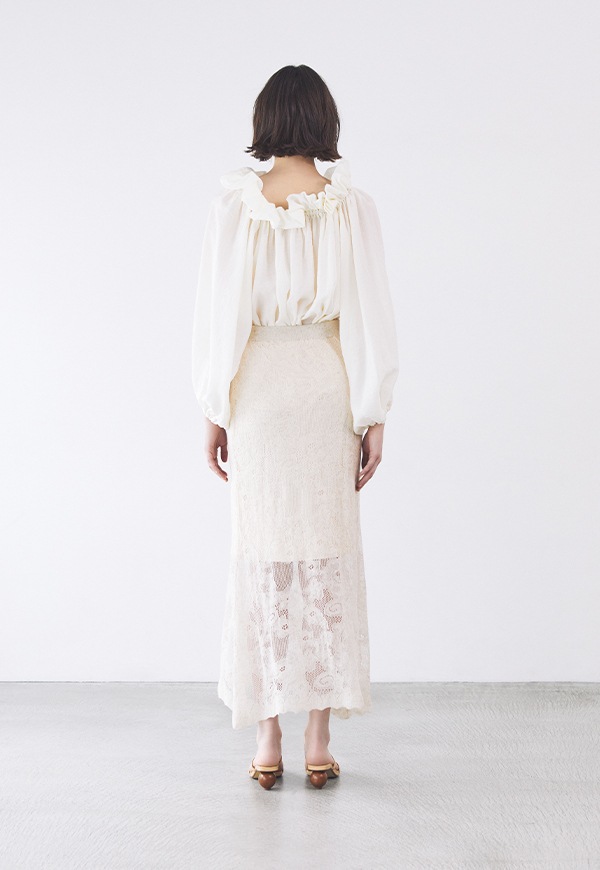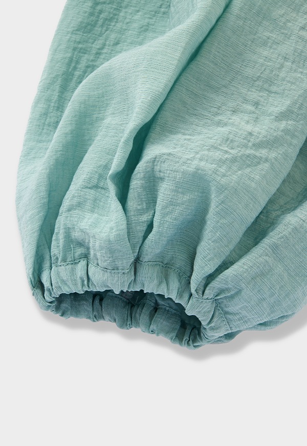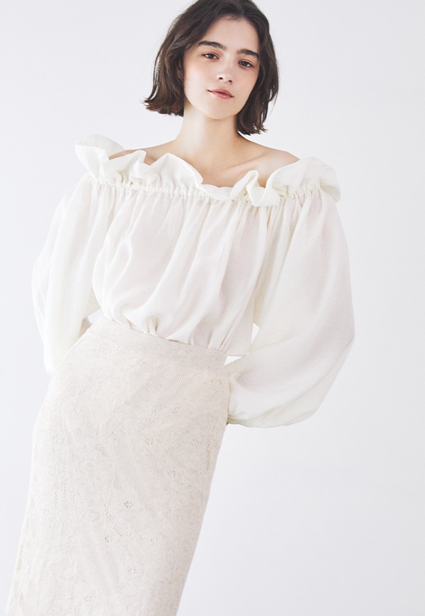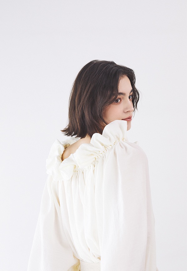 袖口はゴム仕様で、ラフにまくるだけで自然なボリュームが生まれ、甘さの中にもこなれた大人のバランスを演出します。