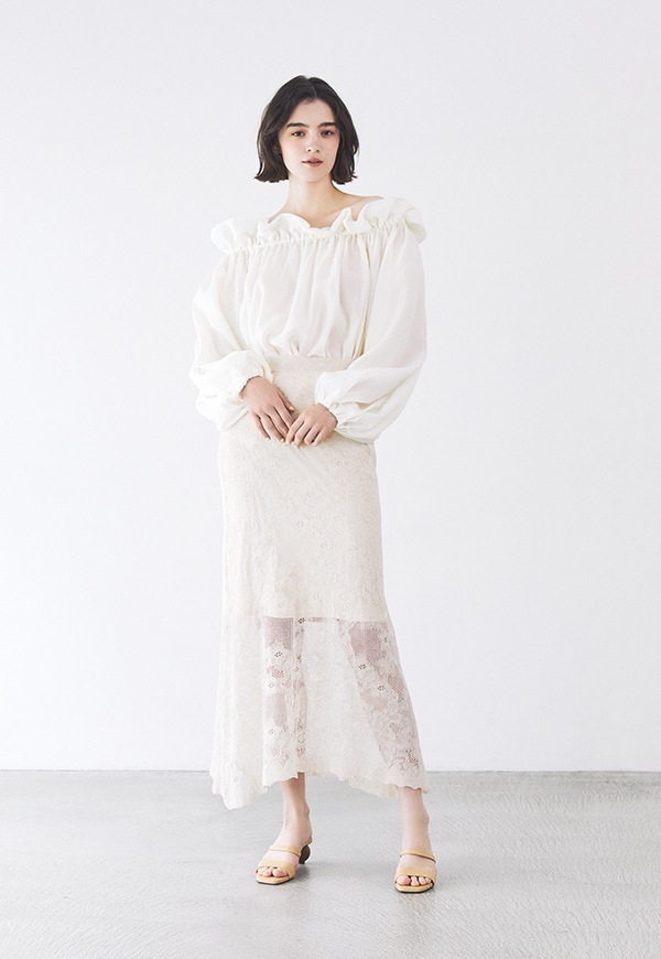 空気をはらむような柔らかさがありながら、程よいハリも感じられ、動くたびにふわりと揺れる表情が女性らしいニュアンスを引き立てます。