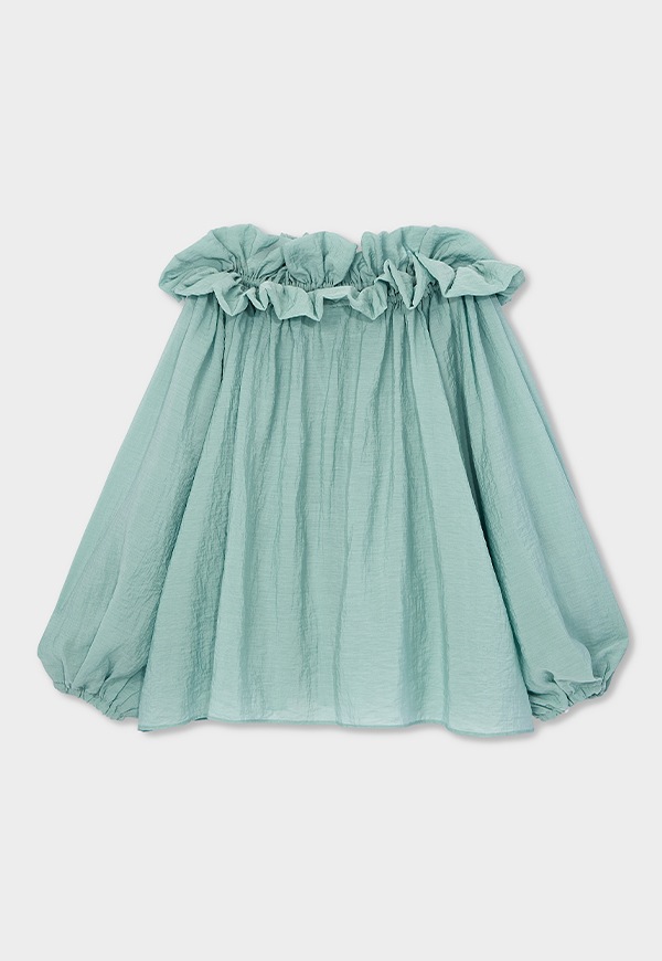 Ruffle Neck Blouse Mintカラーと他の商品を同時に注文された場合、全商品の発送時期が4月中旬から下旬ごろになります。