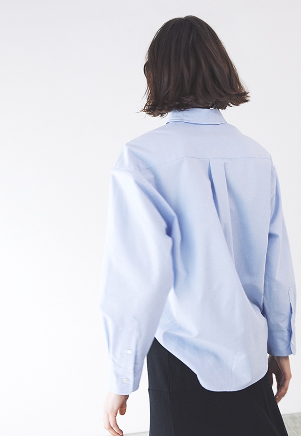 袖をラフにまくったり、裾をタックインしたりと、着こなし次第で表情が変わる万能シャツです。