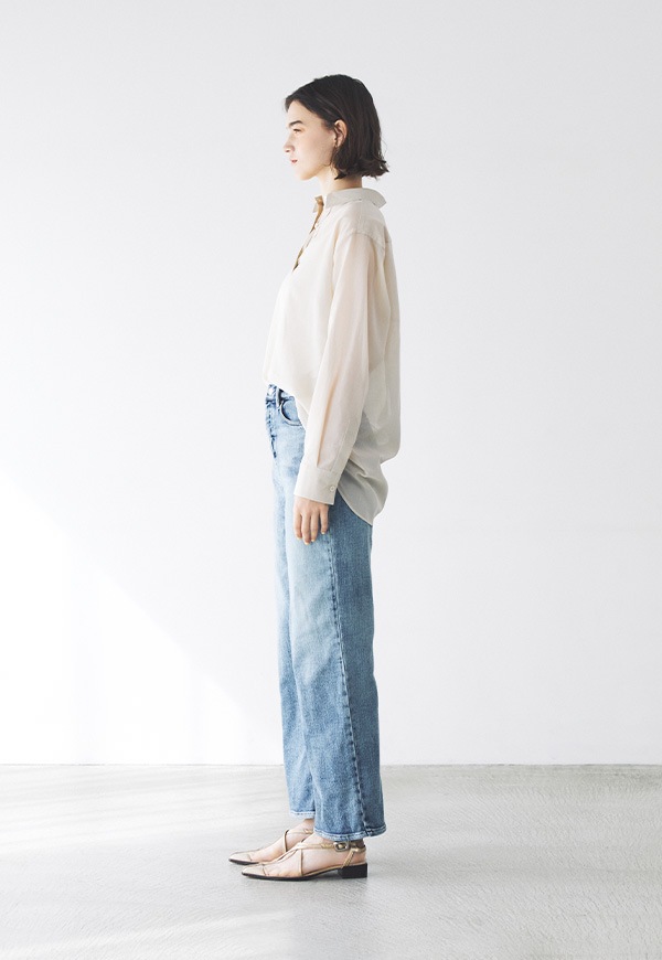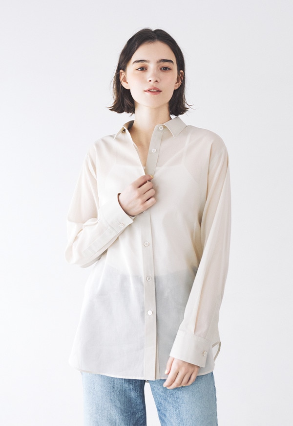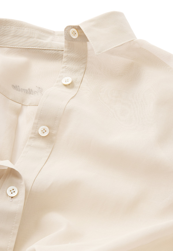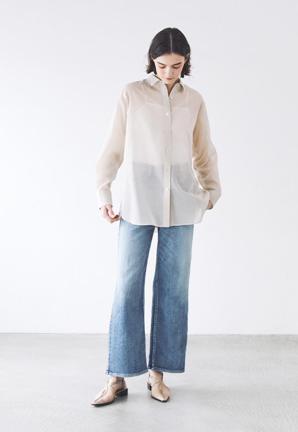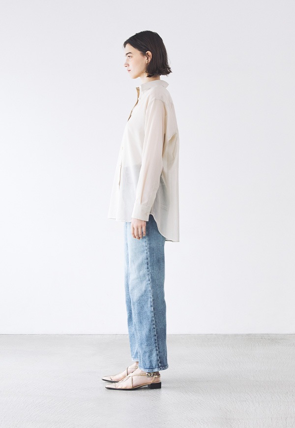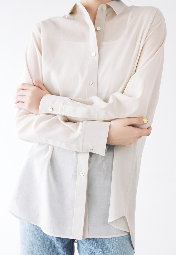 適度な張りを持ちながらも、軽やかで空気をはらむような質感と上品な透け感が、スタイリングに奥行きを与えてくれます。