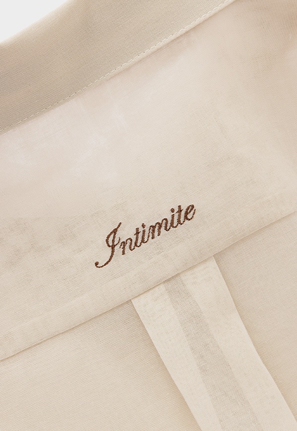 背面には、素材の繊細さに合わせたINTIMITEの筆記体ロゴ刺繍をさりげなく配置。