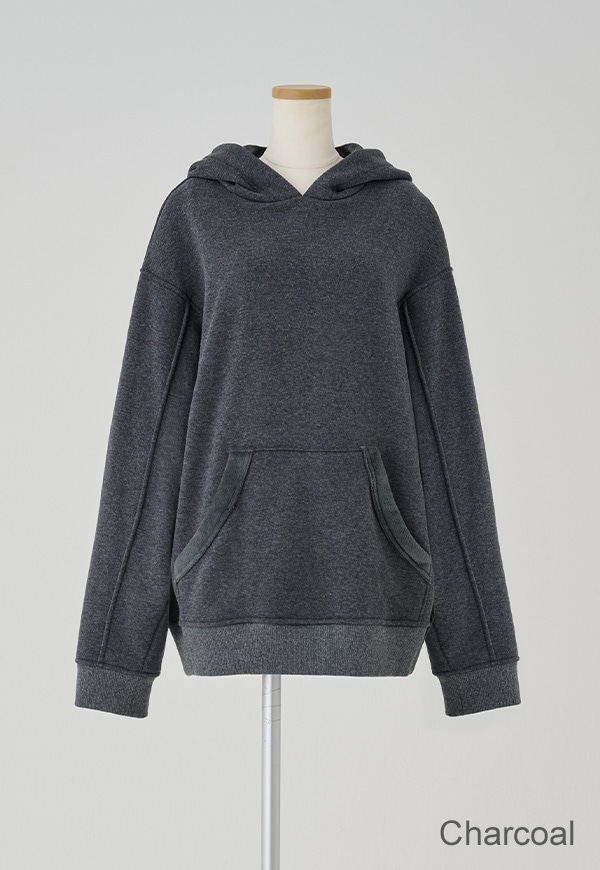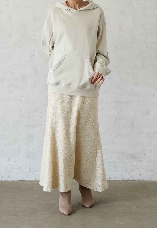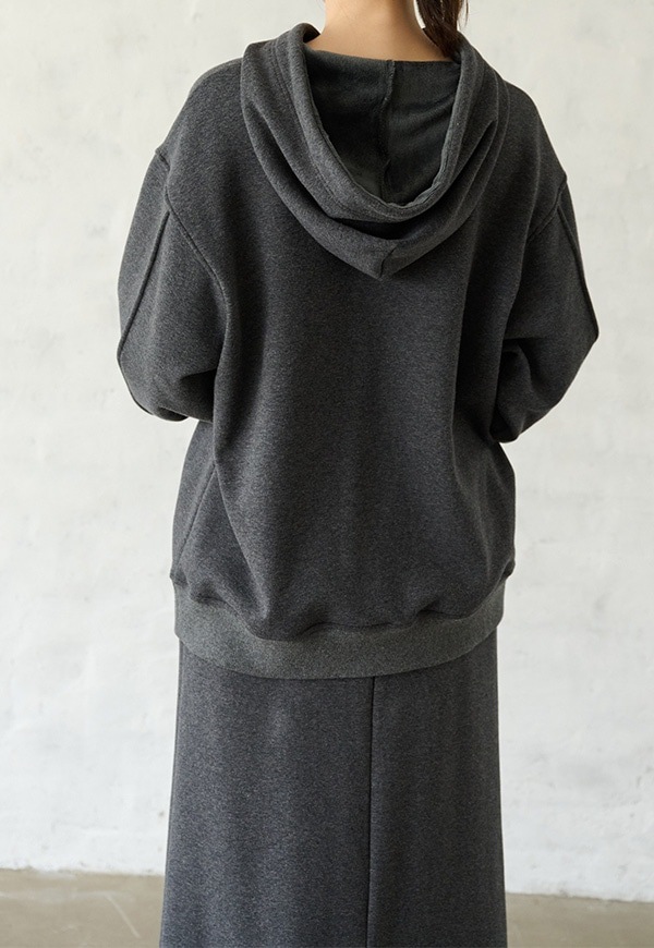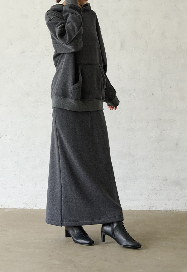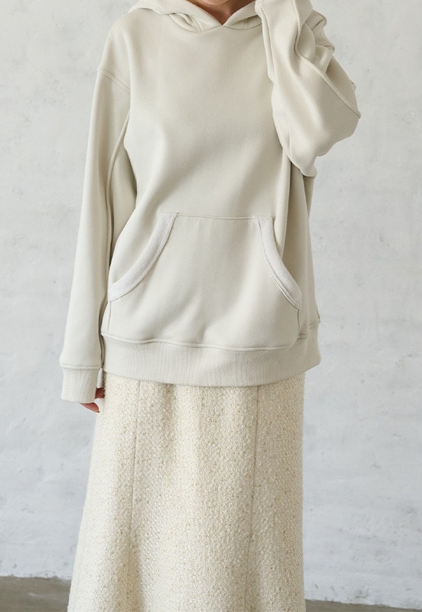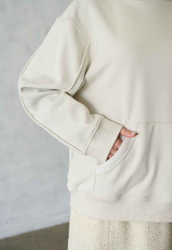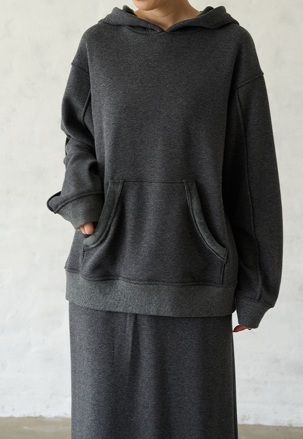 「着用すると気持ちの良いこと」をコンセプトに作った、裏側が肌触りの良い起毛素材のスウェット生地です。部屋の中と外の境界線をなくすような、常に包まれているような安心感を感じる素材です。裏側が起毛加工されているので、温かさが違います。