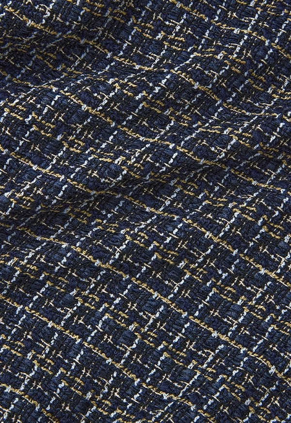 ラメ糸とそれぞれ太さの異なる糸を使って織った立体的な表面感のツィード素材です。