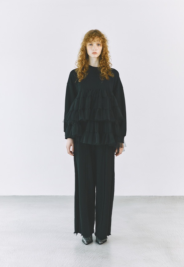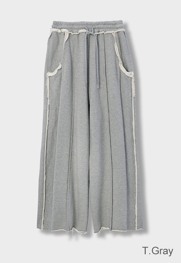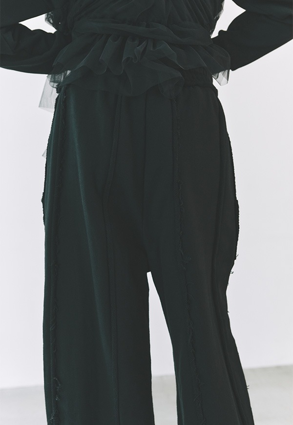 カットオフやピンタックなど様々な仕様とパターンのカッティングを取り入れ、洒落感のあるスウエットパンツに仕上げました。
